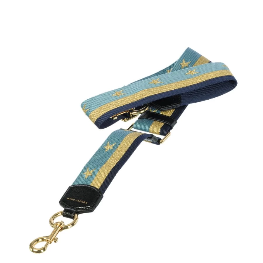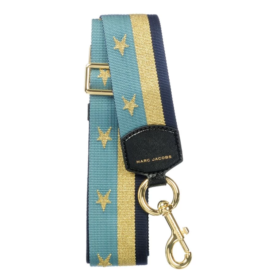 Cette bandoulière large pour sac Marc Jacobs en matière synthétique est ajustable et présente un tissage de rayures et étoiles.