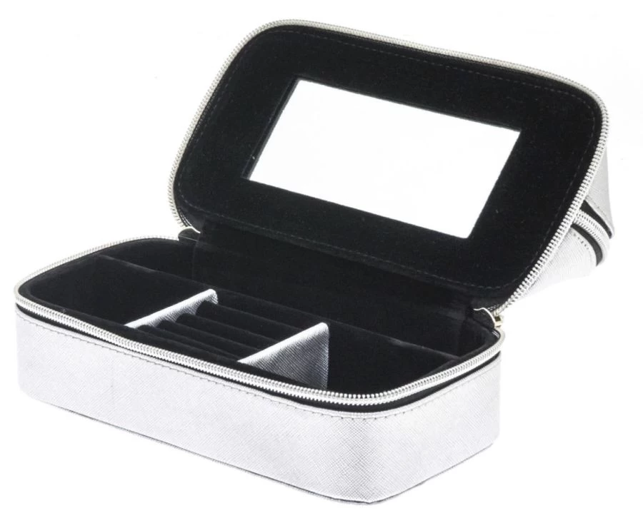 La combinaison parfaite entre la trousse à maquillage zippée au dessus et les coffret à bijoux dans la partie basse.