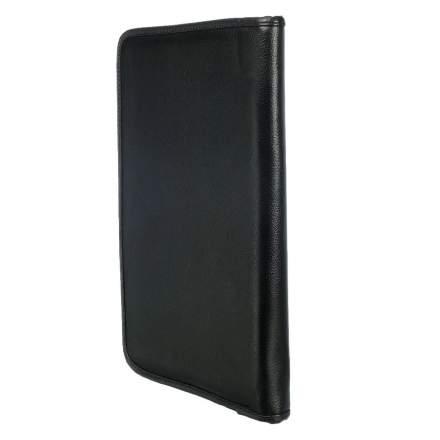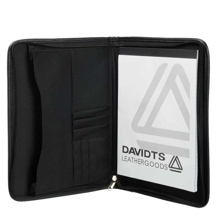 Il se ferme avec un zip et contient trois emplacements pour stylos, trois poches plates pour vos cartes professionnelles, une large poche à soufflets, un emplacement pour bloc-notes A4 et une poche plaquée.