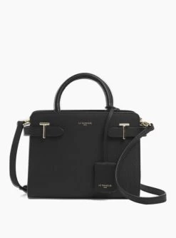 La maison Le Tanneur signe une ligne au style affirmé avec un beau cuir de vachette pleine fleur travaillé avec une impression à chaud de la lettre T, que l’on retrouve également en bijouterie de fermeture à l’avant du sac.
