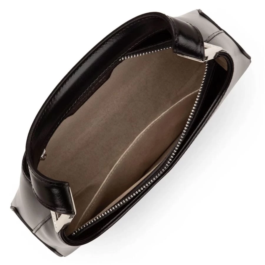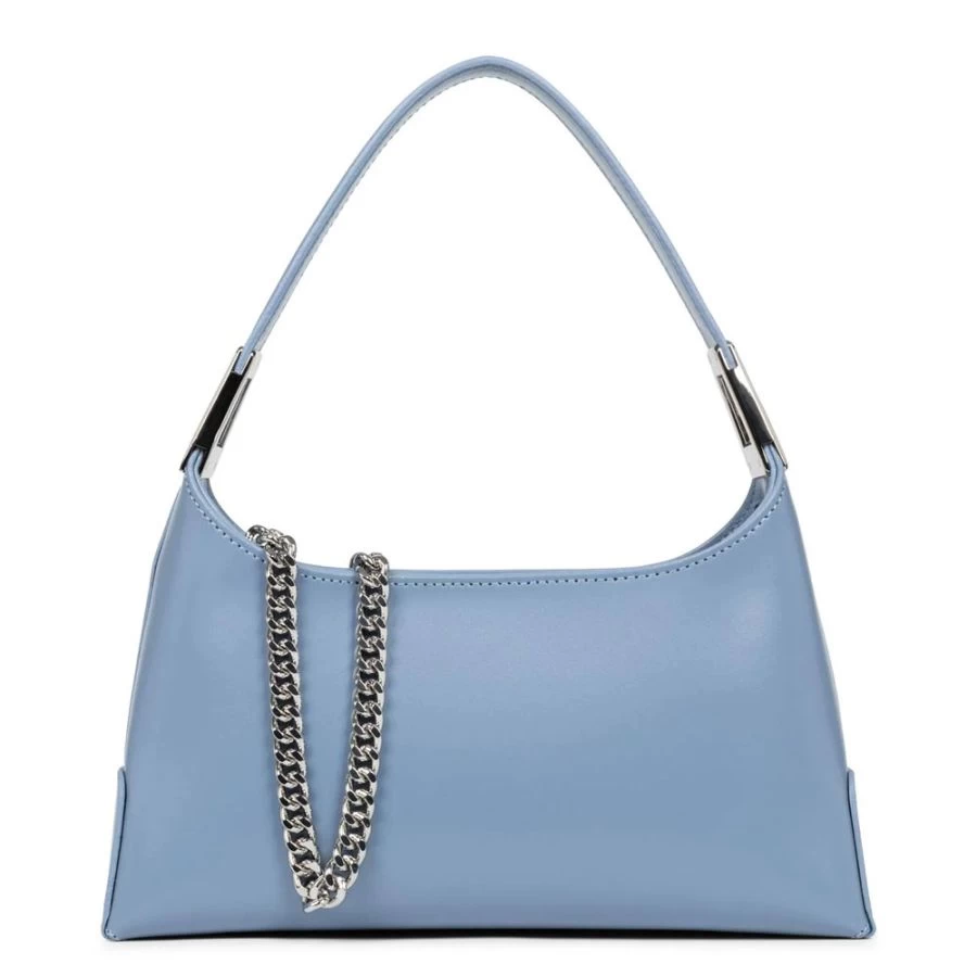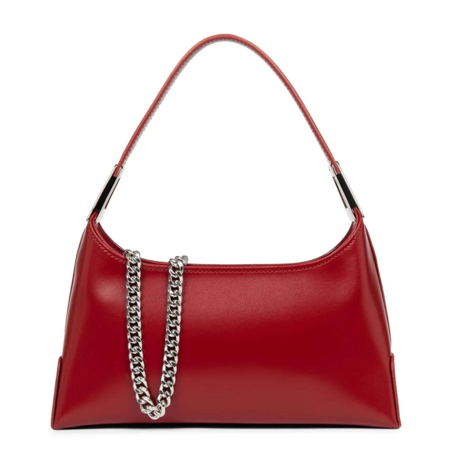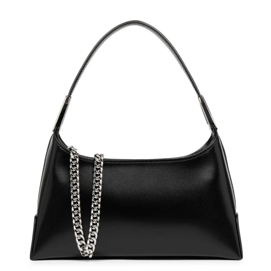 Il se porte à l’épaule avec sa bandoulière chaine amovible ou bien à la main en soirée et contient une poche plate et une poche zippée.