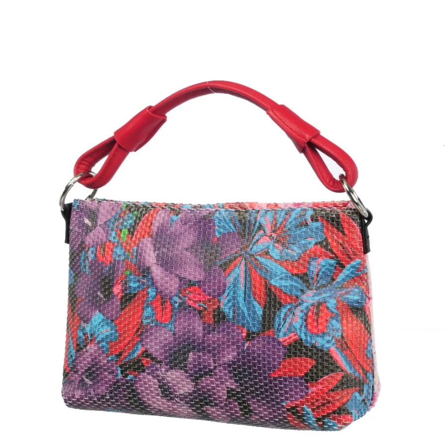 Ce petit sac fleuri comprend une poche zippée et une longue bandoulière amovible et règlable pour le porter croisé.