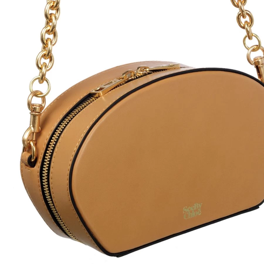 Sa silhouette ovale et structurée est ornée de détails raffinés : chaîne bandoulière, zip en métal et logo See By Chloé doré.