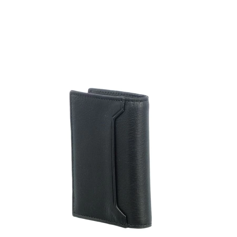 Il s’ouvre sur une poche transparente, une poche plate et un ingénieux système métallique pour ranger ses cartes.