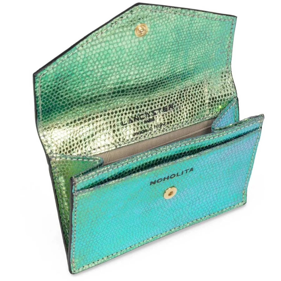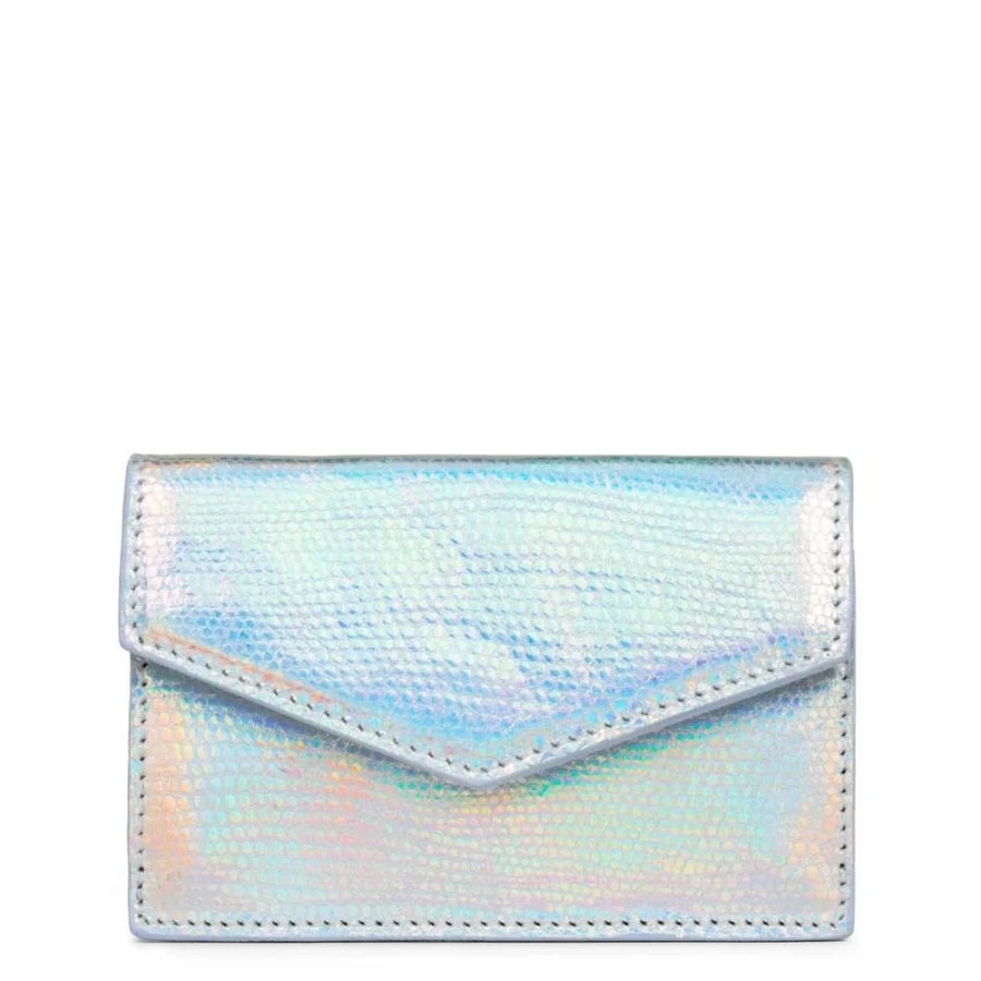 En cuir irisé, ce porte-cartes pourra accueillir 2 ou 3 cartes format CB et un peu de monnaie.