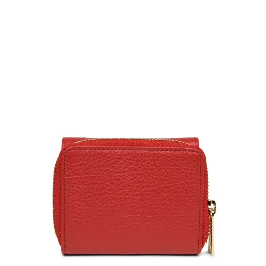 Un petit modèle pratique avec une poche zippée pour la monnaie avec deux compartiments, au dos, 6 emplacements format carte bancaire et une poche à billets.