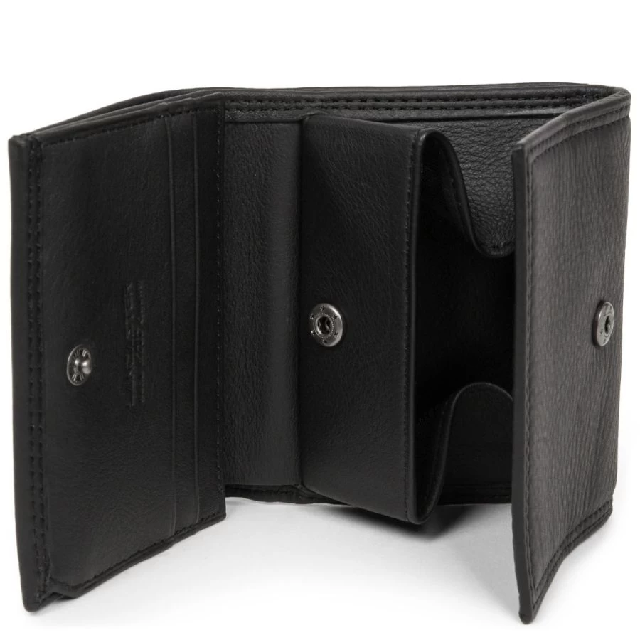 Il est composé de 5 emplacements format carte de crédit, d’un petit compartiment à bouton pression pour la monnaie et d’une poche plate pour les billets.