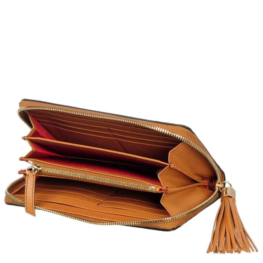 Empreint de l’héritage Lancel, ce portefeuille Premier Flirt conserve les codes qui ont fait la notoriété de la ligne : pompons en cuir, surpiqûres contrastées…