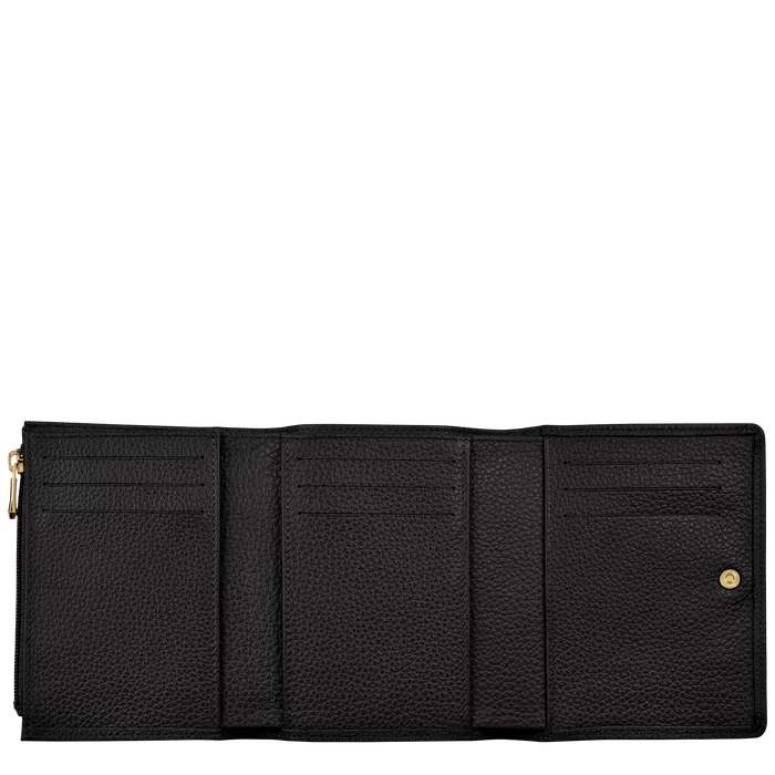 Portefeuille compact Longchamp Le Foulonné en cuir grainé.