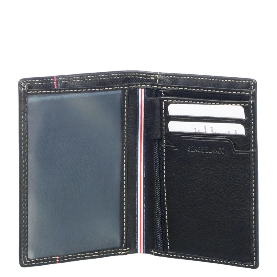 Portefeuille en cuir de vachette de la ligne Vancouver signée Serge Blanco avec surpiqûre contratante et petit marquage rond sur l’avant.