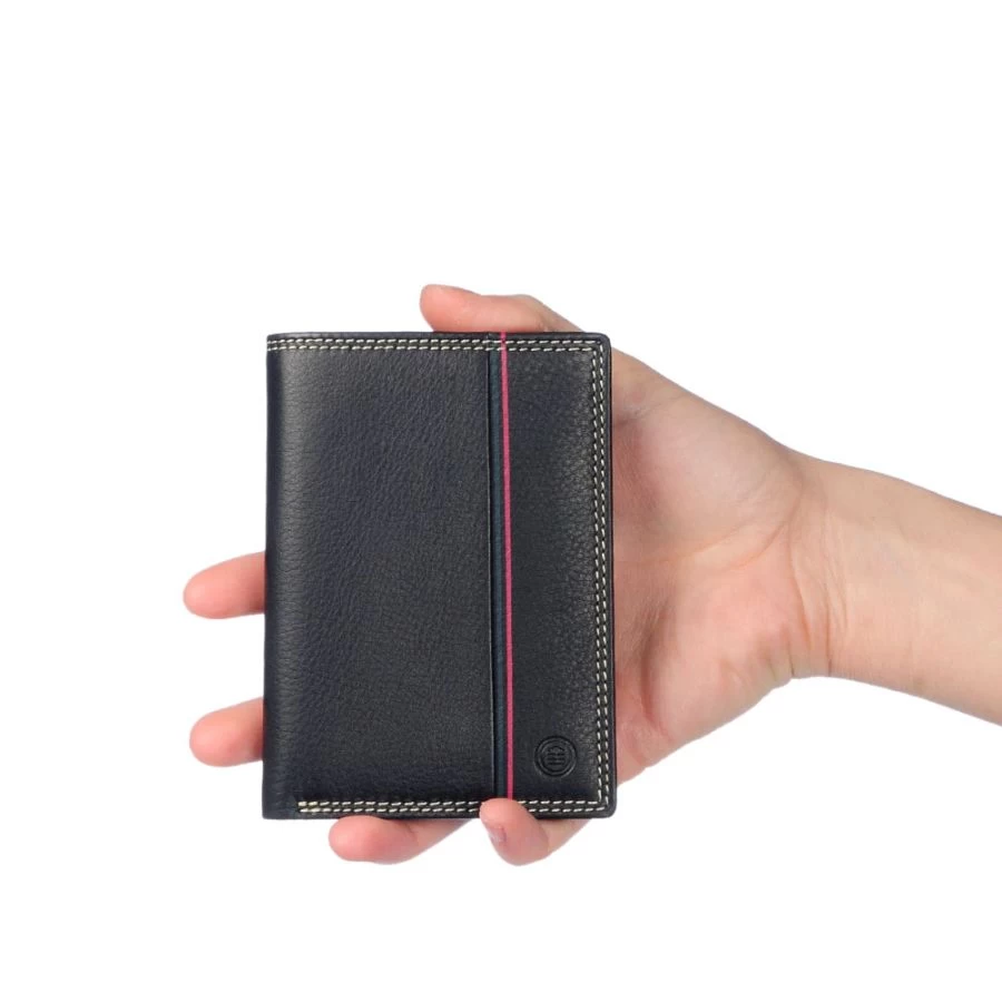 Il propose une poche transparente idéale pour carte d’identité ou permis de conduire, une poche zippée pour la monnaie, 3 emplacements au format CB et une poche à billets .