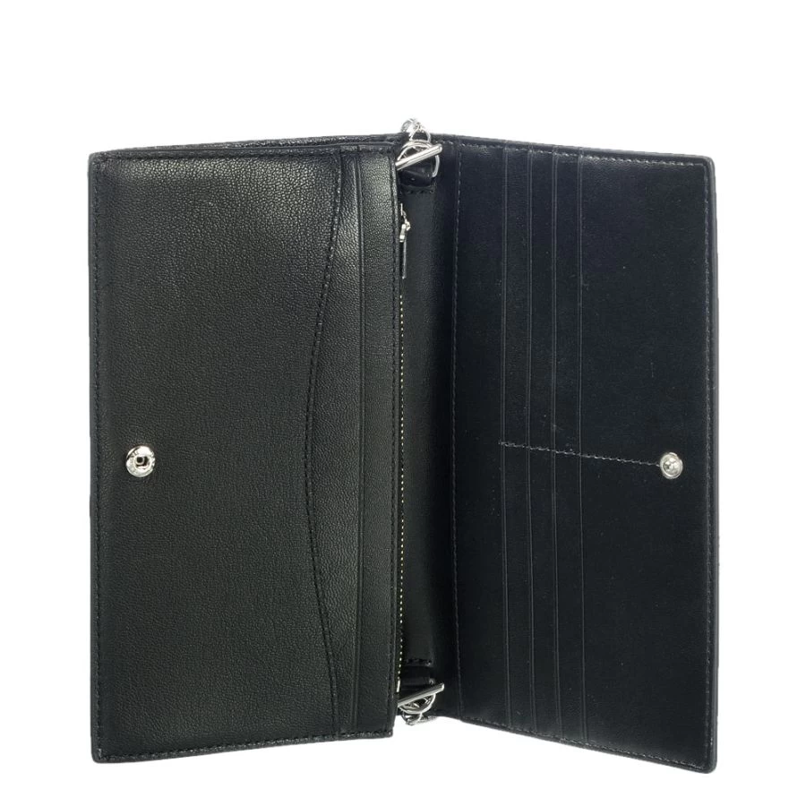 C’est à la fois un portefeuille en cuir, mais muni d’une délicate chaîne argentée qui vous permettra de le transformer en pochette.