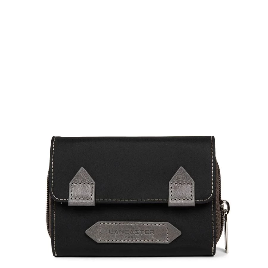 Portefeuille Lancaster Basic en nylon avec détails en cuir de vachette.