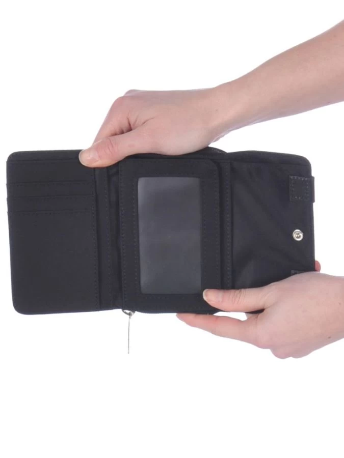 – l’un à fermeture pression, qui propose 6 emplacements au format carte bancaire, 5 poches plates dont deux transparentes pour votre carte d’identité, permis de conduire et une poche transversale pour les billets.