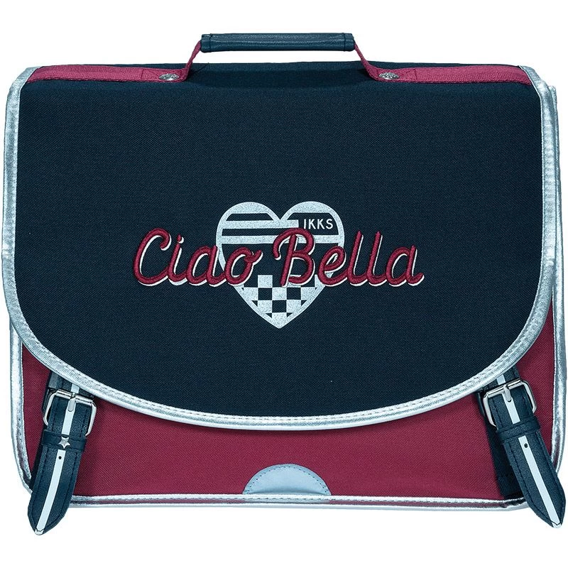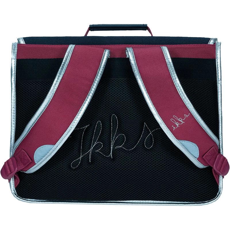 L’intérieur peut contenir classeurs et cahiers 24x32cm et propose deux poches plate à fermeture Eclair et une poche ’emploi du temps’ plastifiée sous le rabat.