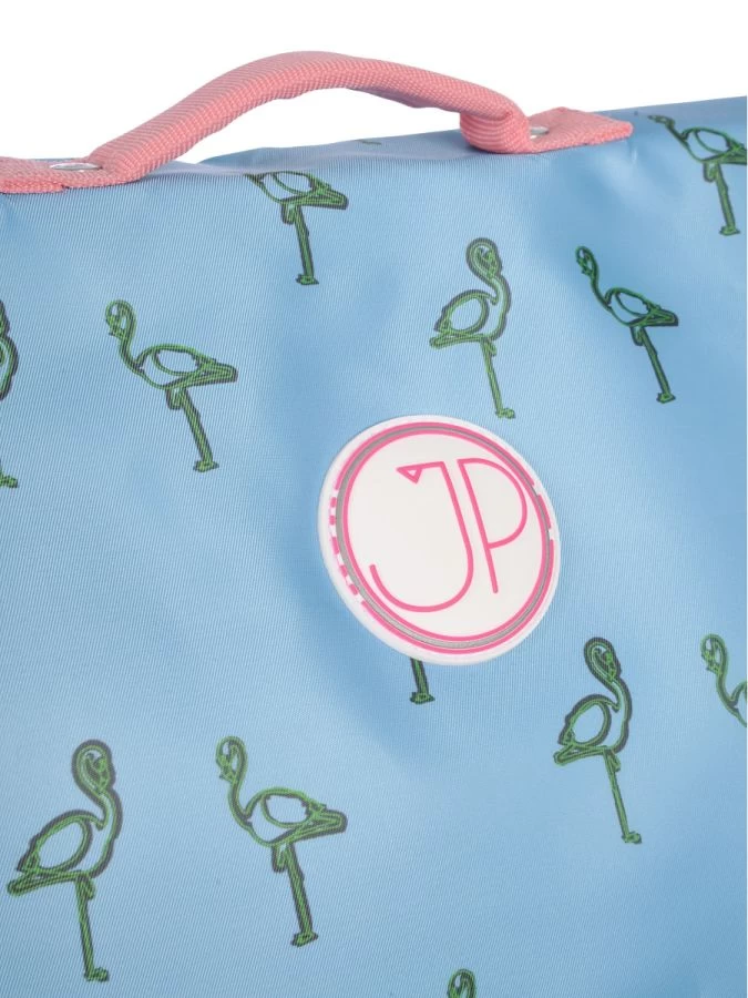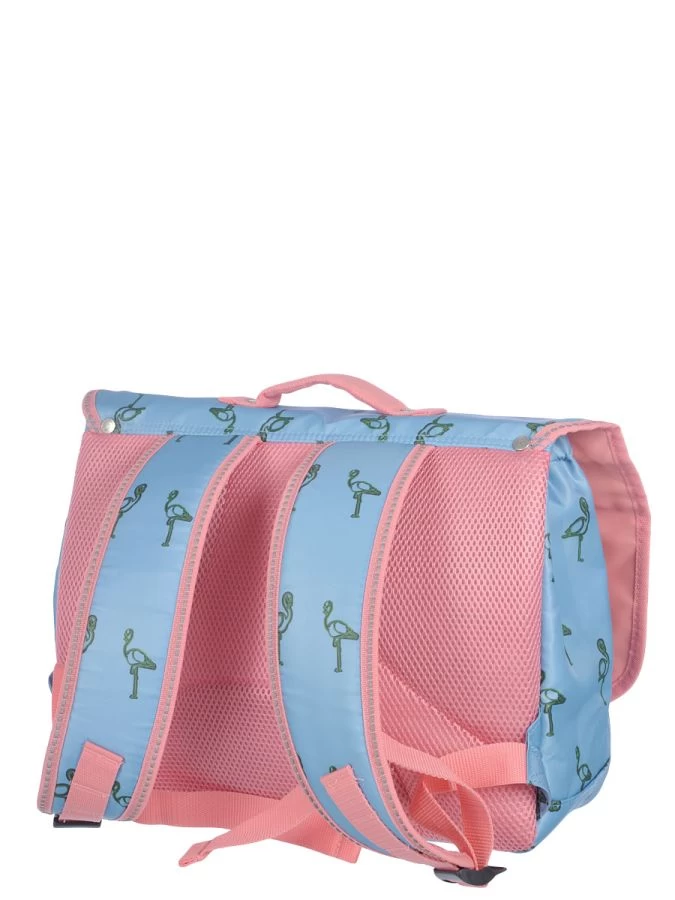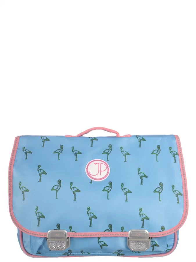 Joli cartable bleu et rose à imprimé flamand fluo. Jeune Premier signe un cartable double compartiment pour le CE1/ CE2. Les clips de fermeture réfléchissants sont en métal, le dos, les bretelles et les coins externes sont renforcés. Une poignée main sur le dessus du sac. Le cartable peut contenir des cahiers 24x32cm et des classeurs 4 anneaux. Grande poche sous le rabat de fermeture.
