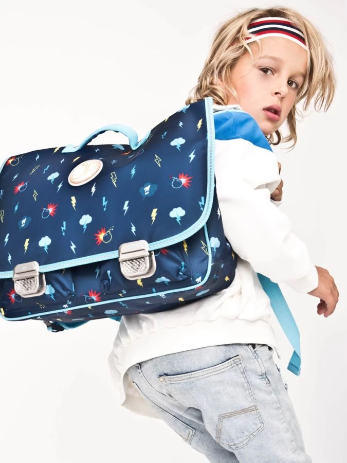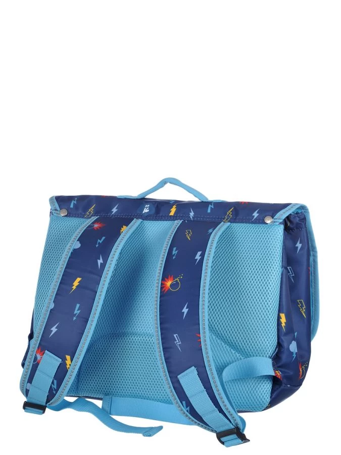 Le dos est matelassé et les larges bretelles sont équipées de bandes réfléchissantes. Des attaches vintage réfléchissantes ferment le rabat. Coins renforcés et poignée pour le porter à la main.