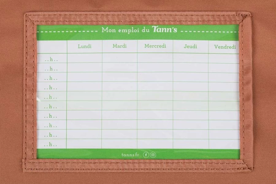 A l’intérieur, une poche plate à fermeture Eclair, une poche à soufflets sous le rabat, une poche ’emploi du temps’ plastifiée et une poche spéciale pour y ranger sa règle.