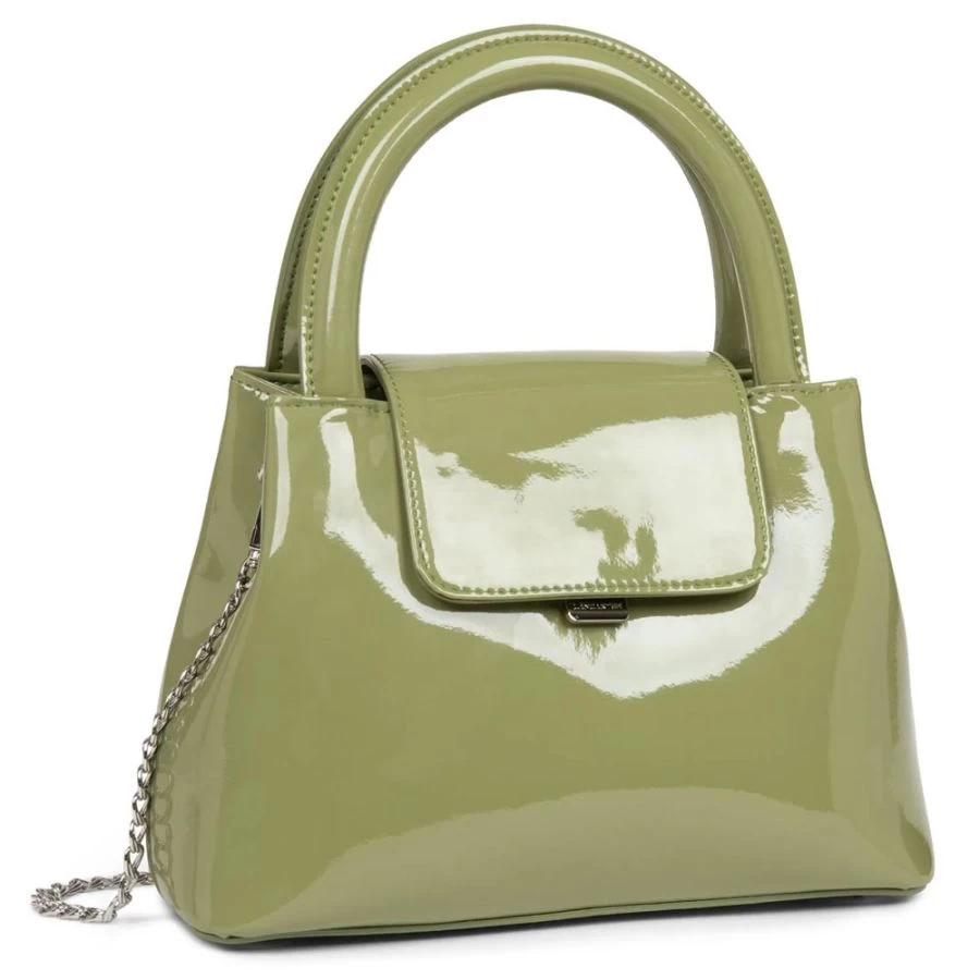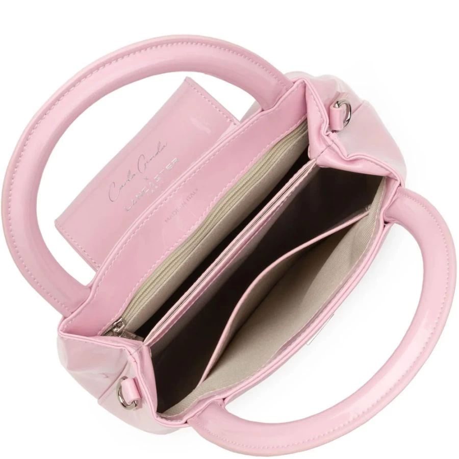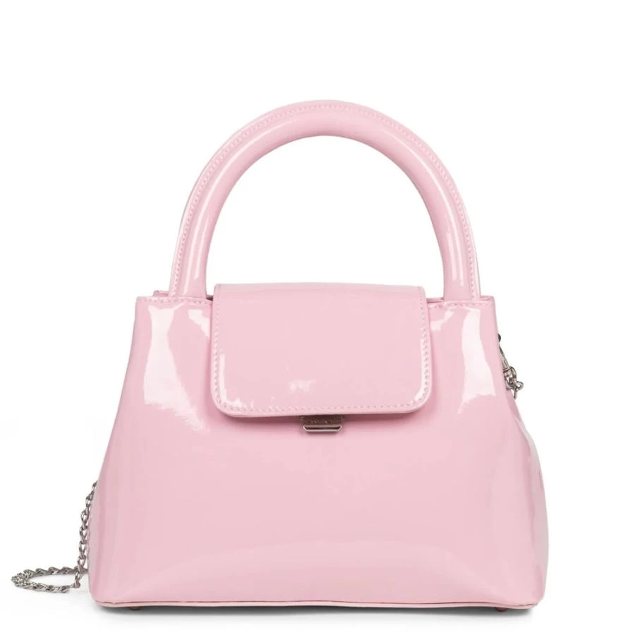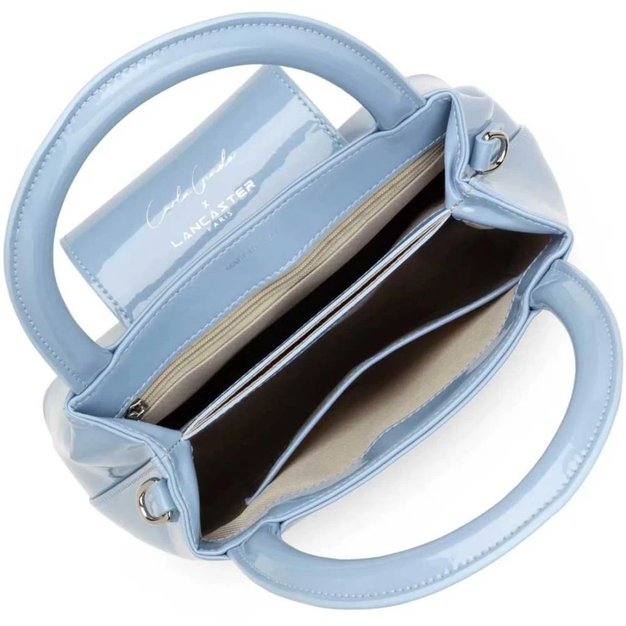 Le sac à main Carla Ginola x Lancaster est confectionné en similicuir verni.