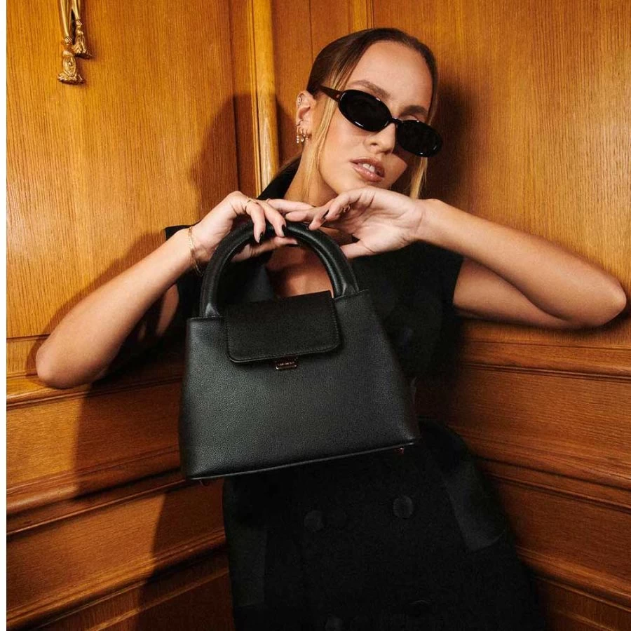Le sac à main Carla Ginola x Lancaster est confectionné en cuir grainé.