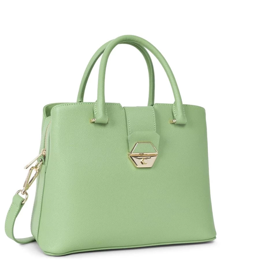Cet élégant sac à poignées Lancaster s’inscrit dans la collection Delphino caractérisée par une finition saffian et un fermoir hexagonal original.