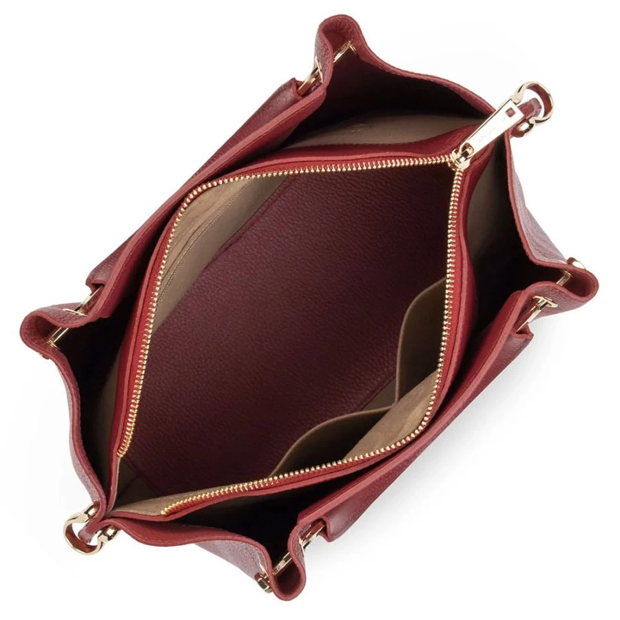 Grand modèle Louisa est reconnaissable à ses courbes rondes et féminines, et à son plissage créé par la fixation de ses poignées en métal gainées de cuir.