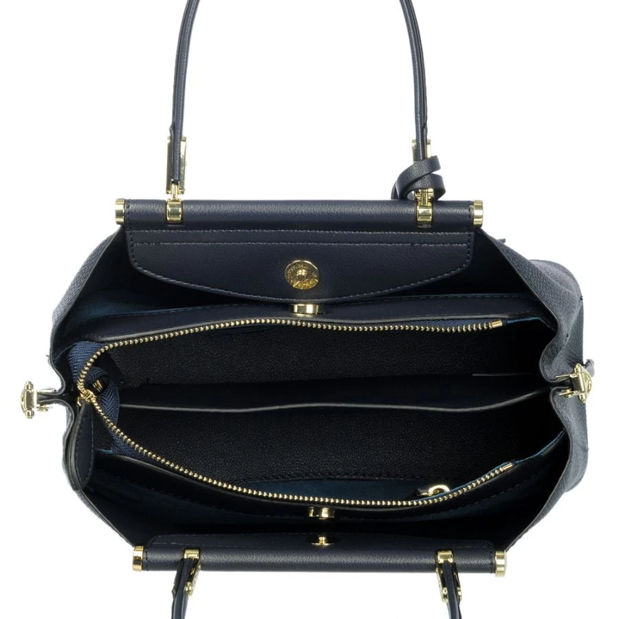 L’intérieur comprend un compartiment central zippé avec 3 poches plates et de part et d’autre, deux grandes poches avec top magnétique.