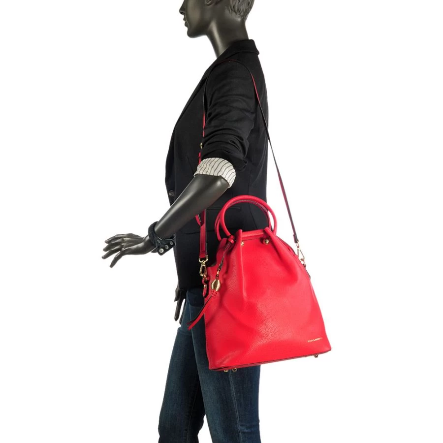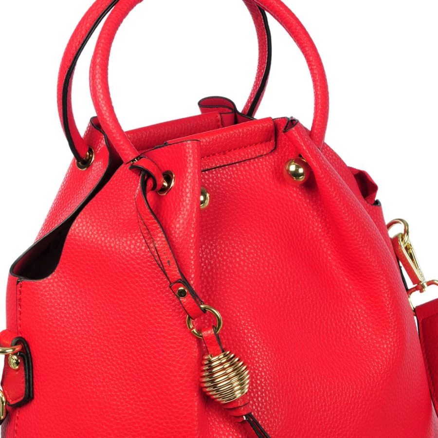 Orné d’une pampille décorative, le sac est aussi équipé de poignées et d’une bandoulière amovible et réglable.