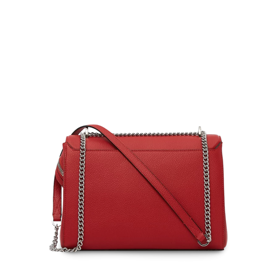 Sa bandoulière chaîne et cuir coulissante offre un double-porté ingénieux.