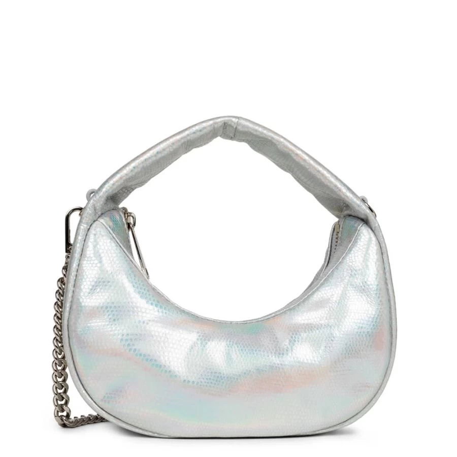 Attention, selon les coloris, le cuir est irisé, grainé ou bien lisse et les pièces en métalliques or ou argent.
