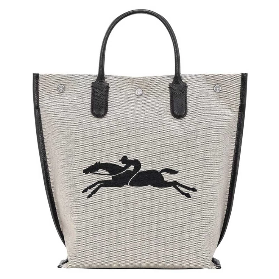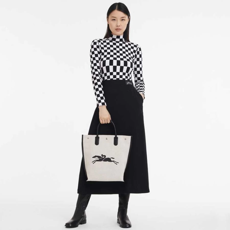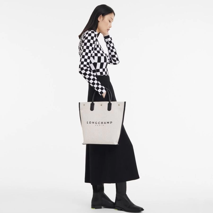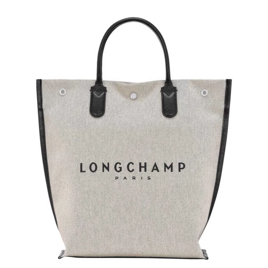 Sac cabas (M) Longchamp Essential en toile de coton chinée, garni cuir.
