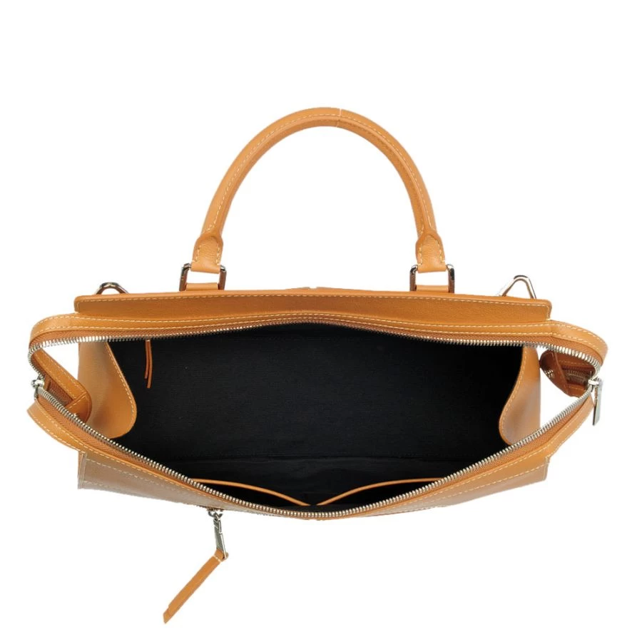 Il s’ouvre largement sur un intérieur doublé de coton, il contient une poche zippée et deux poches plates.