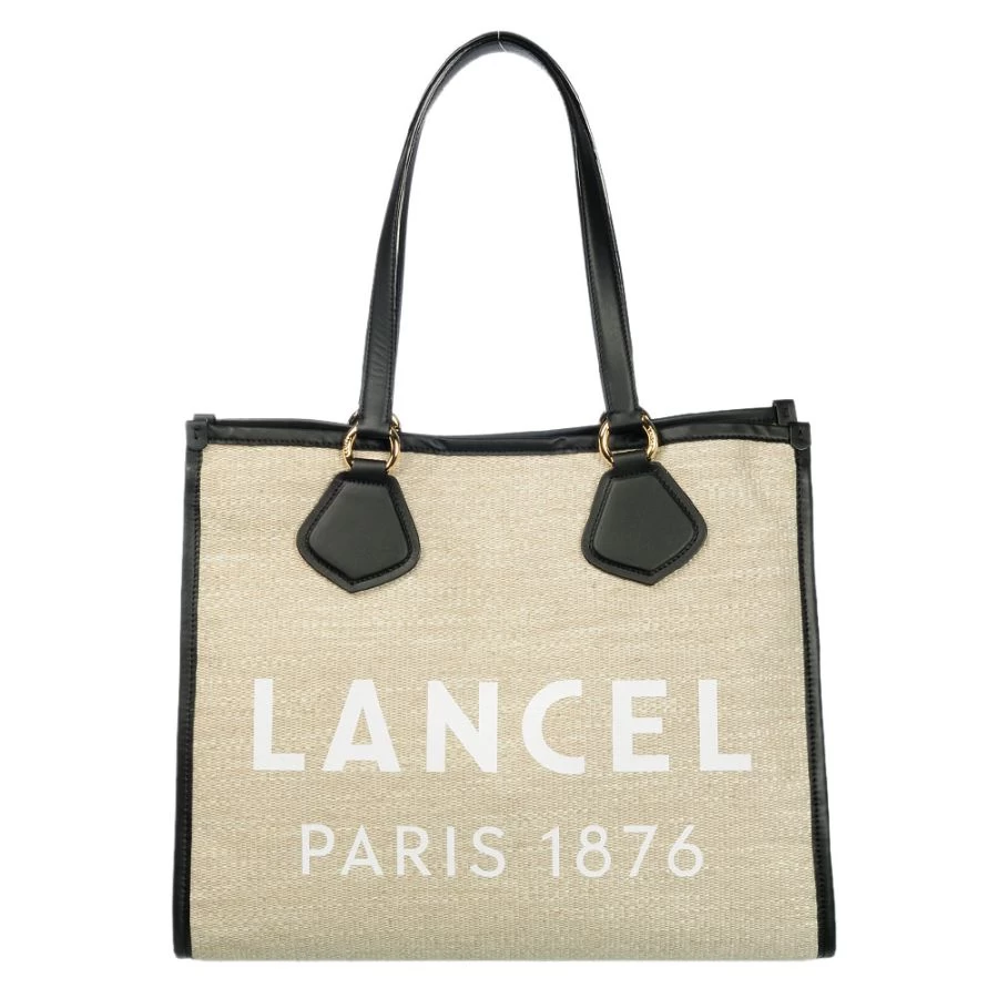 Sac cabas (L) Lancel Summer Tote en toile de jute garnie de cuir.