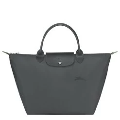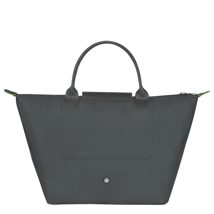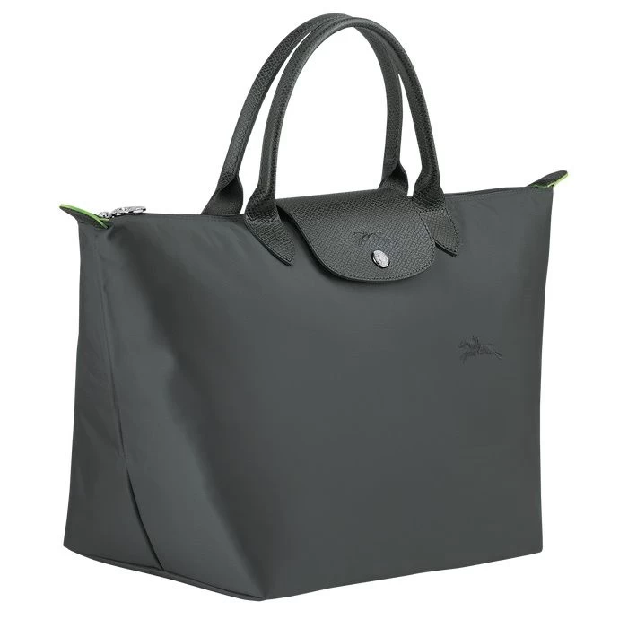 Sac porté main (M) Longchamp Le Pliage Green en toile polyamide recyclée avec rabat en cuir signé Longchamp.