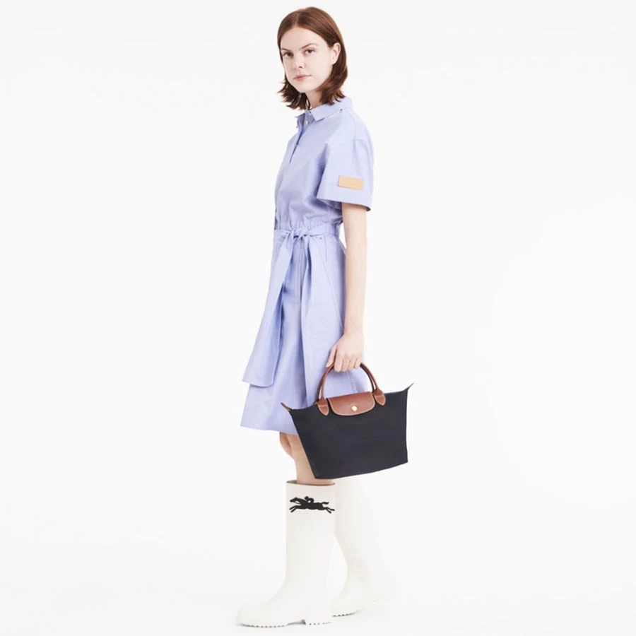 Le Pliage, modèle phare de Longchamp, comprend un compartiment principal zippé avec fermeture rabat à boutons pression et une petite poche plaquée à l’intérieur.