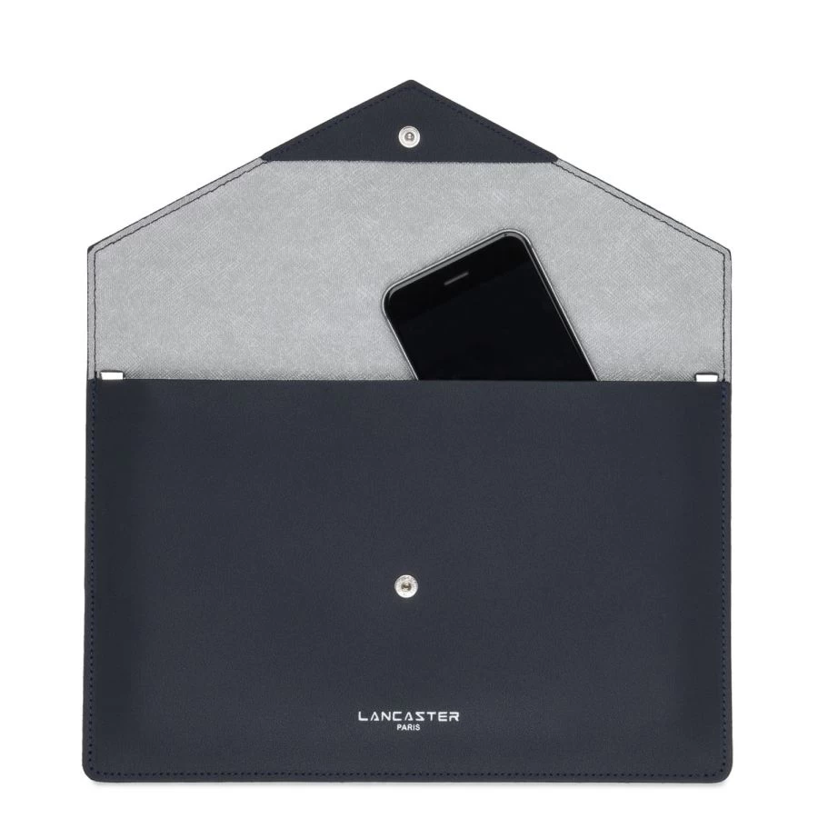 Pochette extra-plate, en forme d’enveloppe, en refente de cuir finition lisse de Lancaster.