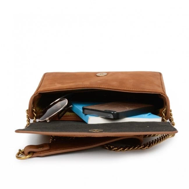 Un rabat donne accès à l’intérieur qui se compose d’une poche plate et d’un emplacement pour carte bancaire.