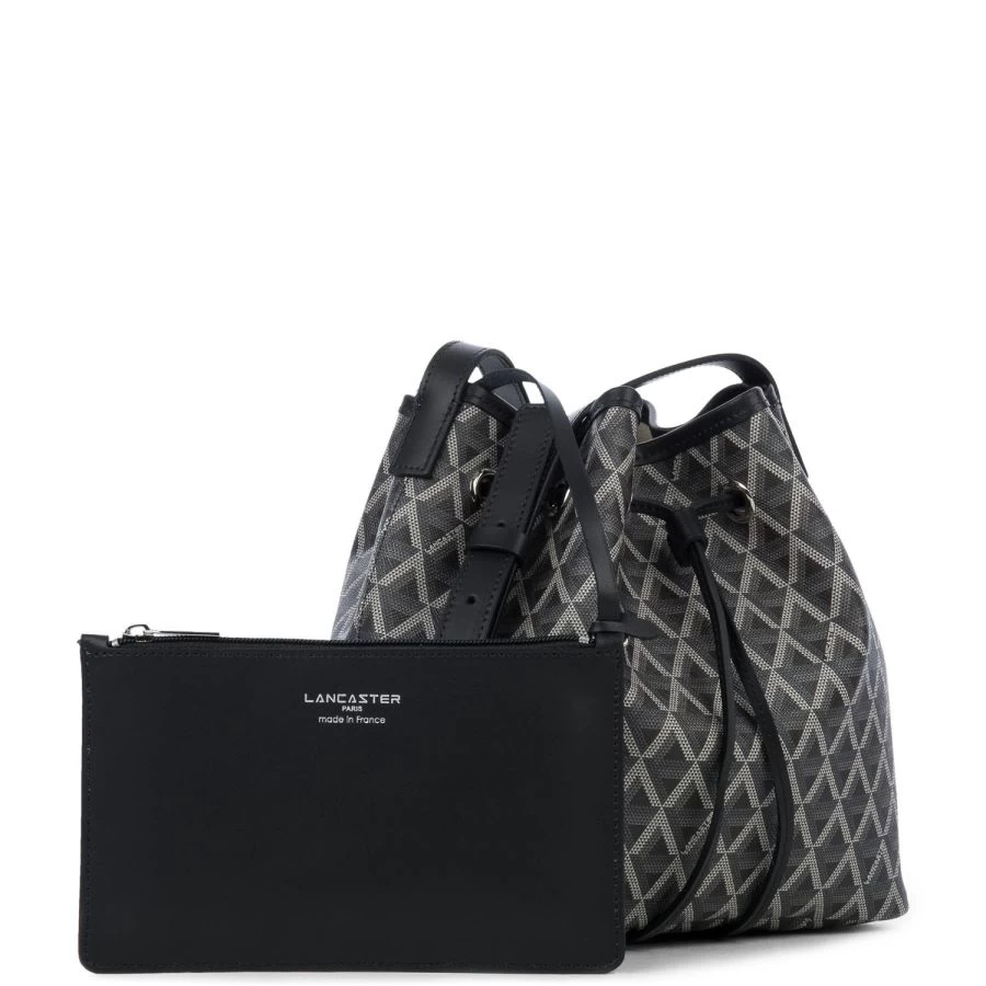 On adore la version graphique saffiano du bucket de Lancaster. L’intérieur se ferme avec un cordon de serrage et se compose d’une trousse amovible.Son petit plus, c’est qu’il est fabriqué en France.- Hauteur max. de la bandoulière à partir du haut (milieu) du sac : ~51cmNos photographies sont retouchées. La retouche d’image n’altère en rien les qualités du produit.