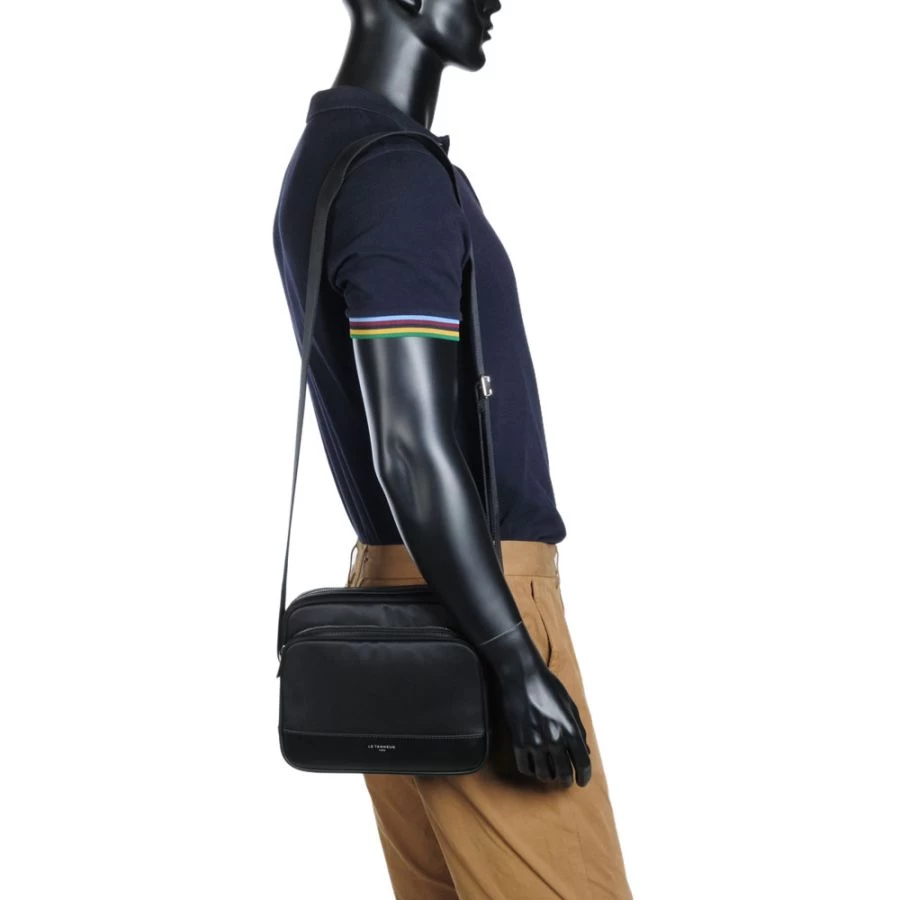 Sac reporter (M) Le Tanneur de la ligne Gaspard en toile polyamide associée à un cuir de vachette lisse aux endroits stratégiques d’usure pour une meilleure durabilité.