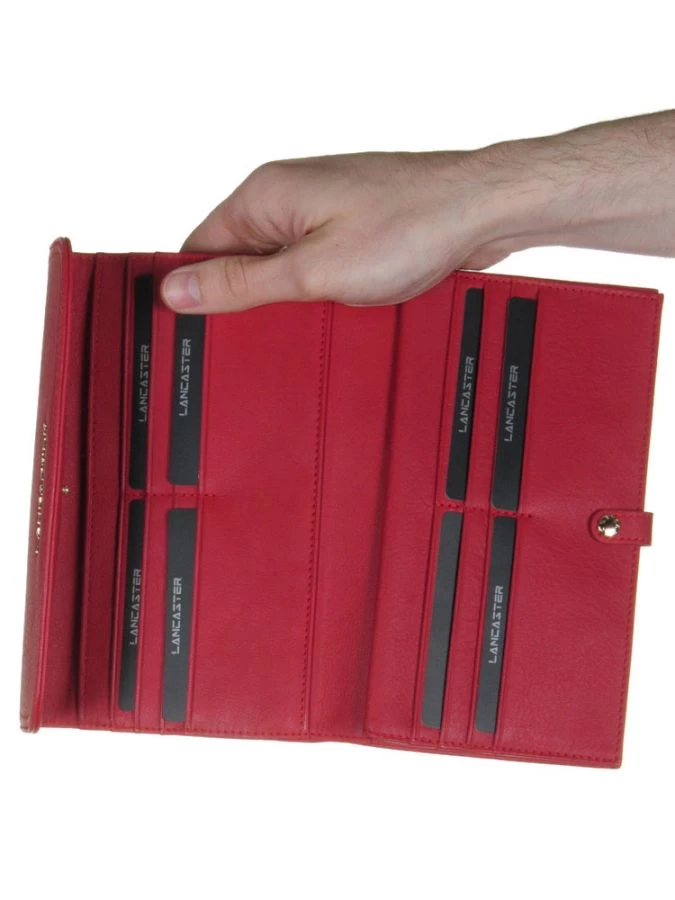 Vous ne pourrez plus vous séparer de ce tout-en-un en cuir de vachette pleine fleur, assorti aux sacs Melle Ana de Lancaster. Au dos se trouve un porte-monnaie, à deux soufflets avec poche zippée pour vos billets.Très complet, il s’agence avec :- 16 emplacements cartes bancaires, – une vue transparente pour carte d’identité ou permis de conduire,- de deux poches plates pour la carte grise et coupons de réduction,- d’un emplacement pour le chéquier talon en haut.Nos photographies sont retouchées. La retouche d’image n’altère en rien les qualités du produit.