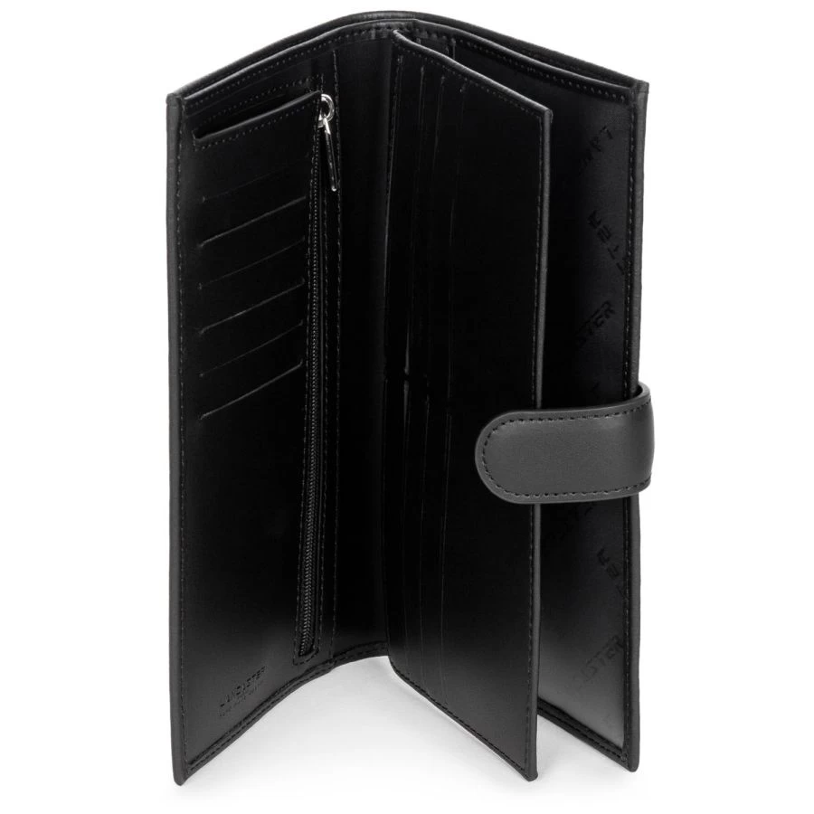 Il est équipé de 14 emplacements au format carte de crédit, d’un emplacement pour votre chéquier, de deux poches plates et d’une poche zippée pour la monnaie.