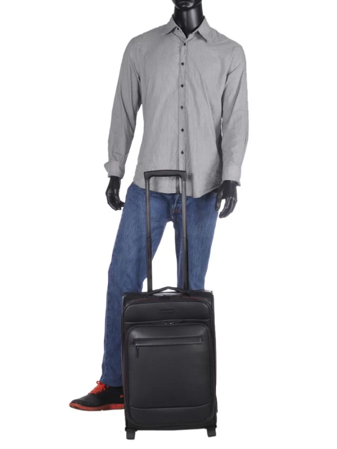 Une poignée à main, une poignée trolley ajustable en hauteur, porte-adresse au dos (non amovible).