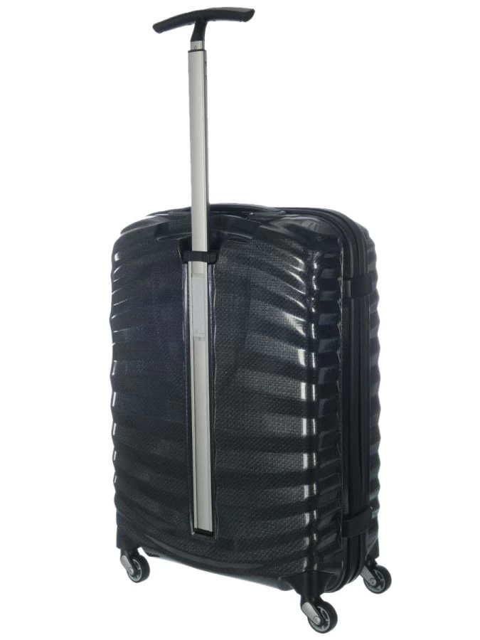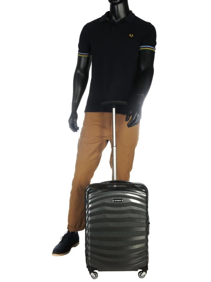 Valise 55 cm Samsonite Lite-Shock. Elle dispose d’un design unique, assurant l’absorption des chocs dans les angles.