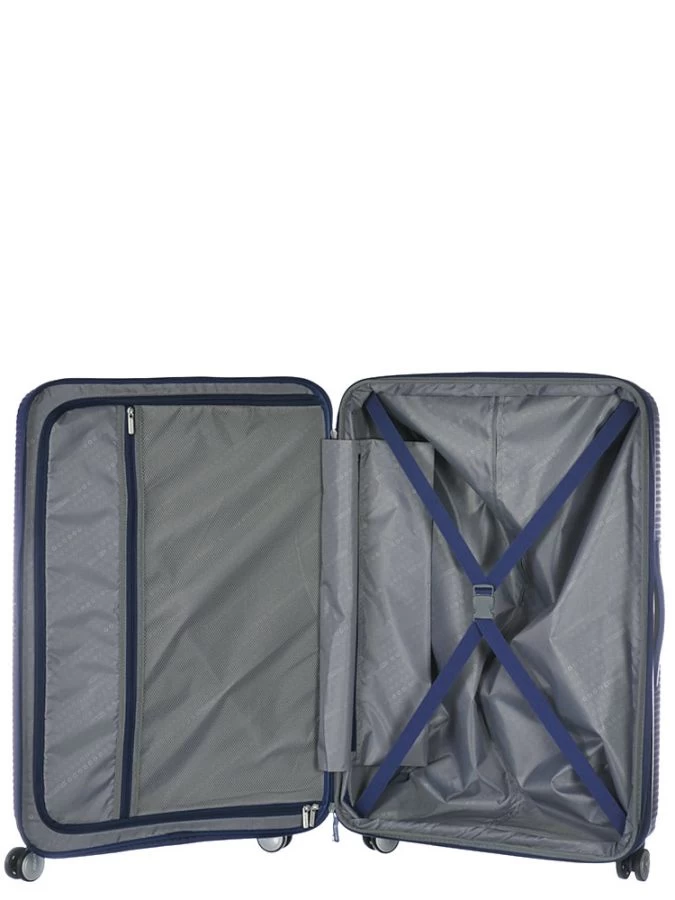 Entièrement doublé, l’intérieur dispose d’un plateau de séparation zippé, de 2 paires de sangles croisées pour le maintien des vêtements et de 2 poches plates.